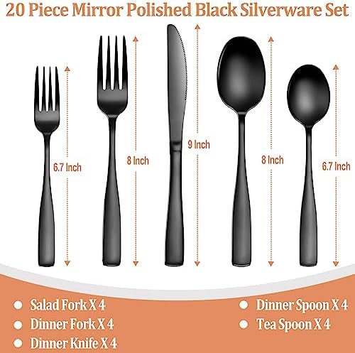 **20 Pcs Black Silverware Set – Elegant Stainless Steel Flatware for 4**