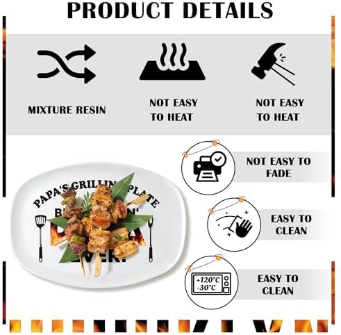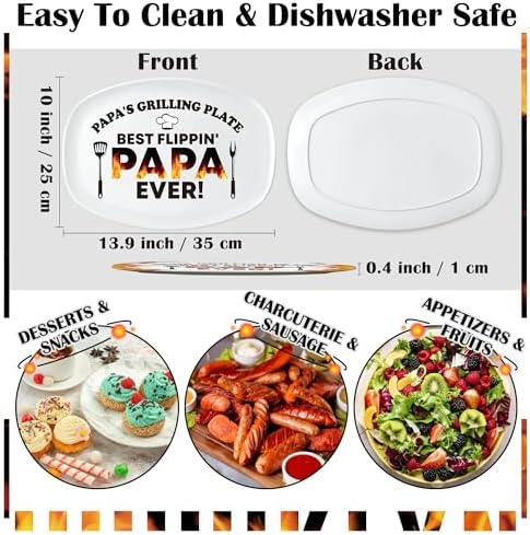 R HORSE Papa Melamine Grill Platter Gift – Papa Barbecue Serving Tray Plate, White Oval Serving Dish Christmas Birthday Gift for Dad Appetizers Desserts Charcuterie Outdoor Indoor Dinner Party